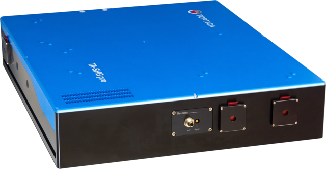 Why have one TA if you can have the power of two in the same package? By coherently adding the output of two TA chips we can increase the output power by > 80%. This TA-SHG pro XP is available for selected wavelengths.